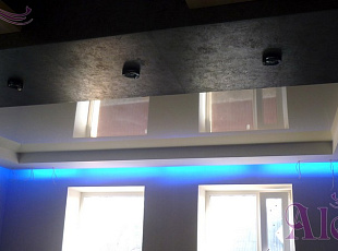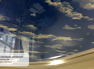 Глянцевый потолок в спальне 14 кв.м с установкой