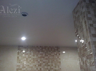 Глянцевый потолок в санузле 4 кв.м с установкой
