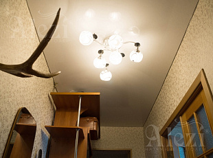 Глянцевый потолок в спальне 12 кв.м с установкой